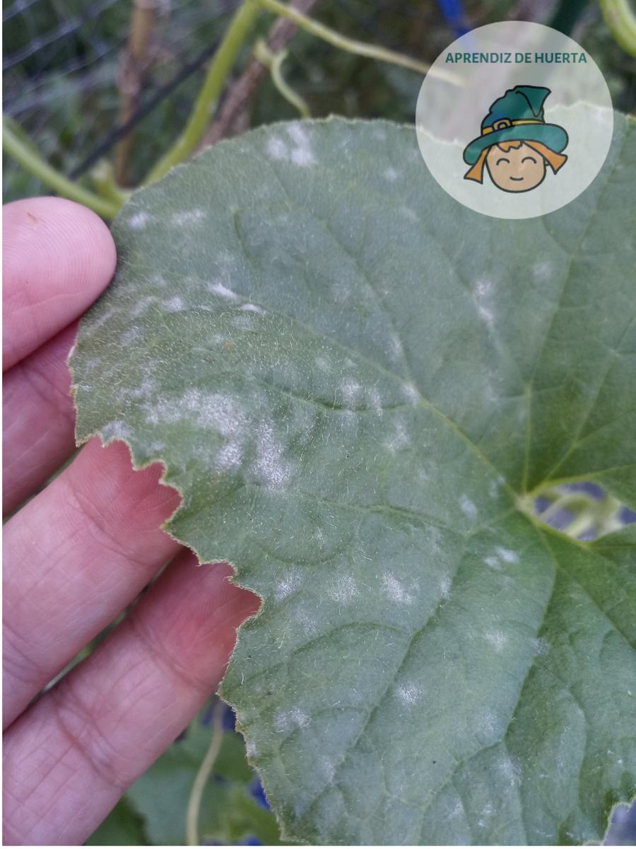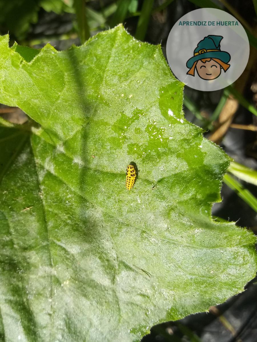 Como podéis observar, en la imagen además de la larva hay bastante oídio en la planta. Pues bien, también me contaron que este tipo de mariquitas efectivamente, se alimentan de hongos como el mildiu y el oídio.
