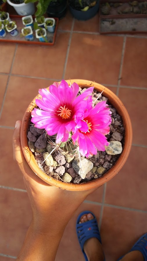 Esta es mi otra lobivia arachnacantha. Como veis las flores son distintas a las otras dos que tengo, al parecer depende del polen de la planta madre el hecho de que la flor sea de una forma u otra.