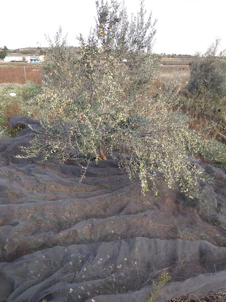 Debajo y alrededor de los olivos colocamos las "mantas" que ahora se llaman mallas de recolección pero que hoy día todavía les decimos mantas porque era lo que se empleaba antiguamente.