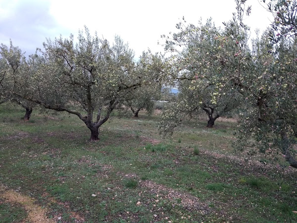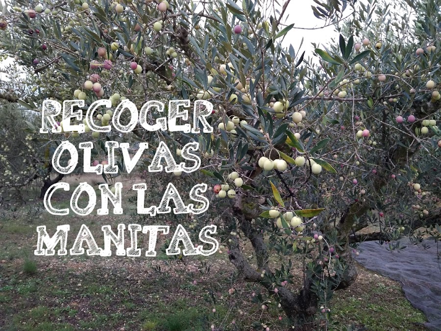 Bueno, vamos a la faena. Otra de las características de la aceituna blanqueta es que está bien agarrada al olivo por lo que cuesta más de recolectar que otras variedades que se desprenden con más facilidad.Por este motivo y porque se trata de un Huerto pequeño optamos por la forma tradi8cional de coger las olivas, es decir, a mano, como si de ordeñar una vaca se tratara aunque en lugar de leche obtenemos aceite u, como más nos gusta llamarlo a nosotros, oro líquido.
