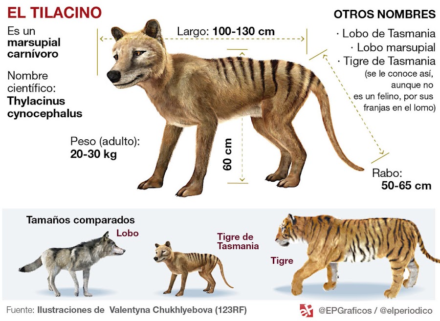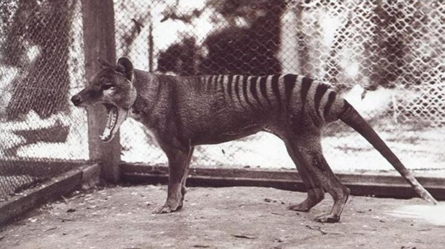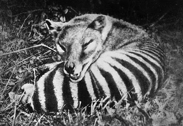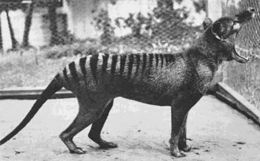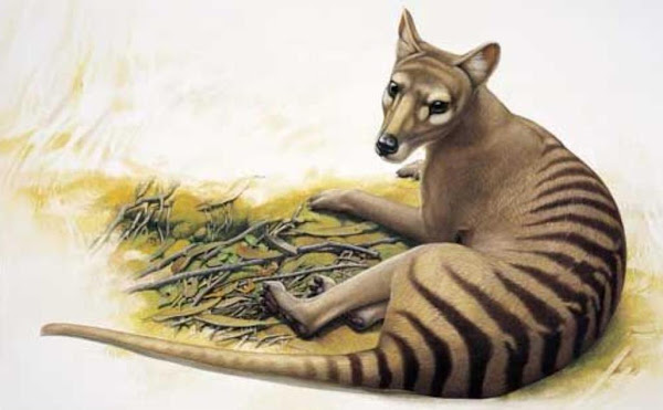 TAMBIÉN LLAMADO TALACÍN, LOBO MARSUPIAL, LOBO DE TASMANIA Y TIGRE DE TASMANIA. EL ÚLTIMO EJEMPLAR DE ESTA ESPECIE DESAPARECIÓ EN LA DÉCADA DE LOS AÑOS 30 DEL SIGLO PASADO, AHORA PARECE QUE HA HABIDO ALGÚN AVISTAMIENTO?