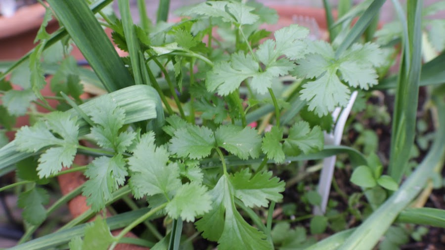 El tema que tiene el cilantro es que se florece de un dia para el otro y ahí nomas cambian las hojas y se muere. Esto es porque el cilantro responde a la duración del día. Así durante otoño y primavera no tenemos problemas pero en verano, cuando los días se hacen mas largos, la planta detecta la señal, florece y semilla. Se puede demorar esto por un tiempo, dándole sombra, regándolo bien y cosechando hojas seguido pero finalmente, es imposible detener que se espigue y semille.