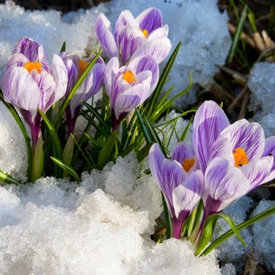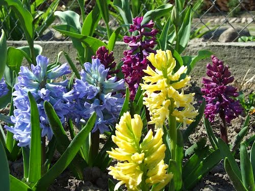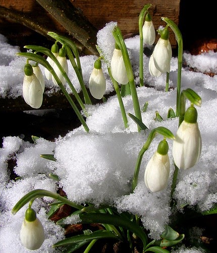 Los primeros en asomar entre la nieve son las "campanillas de invierno" (Galanthus nivalis), a continuación empiezan los Crocus y los Muscari de tono azul, blanco o rosado. Estas variedades se suelen plantar en grupos, que crean unas manchas coloridas a finales de invierno con un entorno monótono y grisáceo. Prefieren lugares algo sombreados, y como son unas pequeñajas muy vigorosas, con paso de los años crean más plantas nuevas y se convierten en unas verdaderas alfombras floridas.