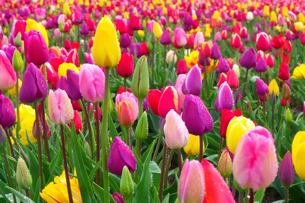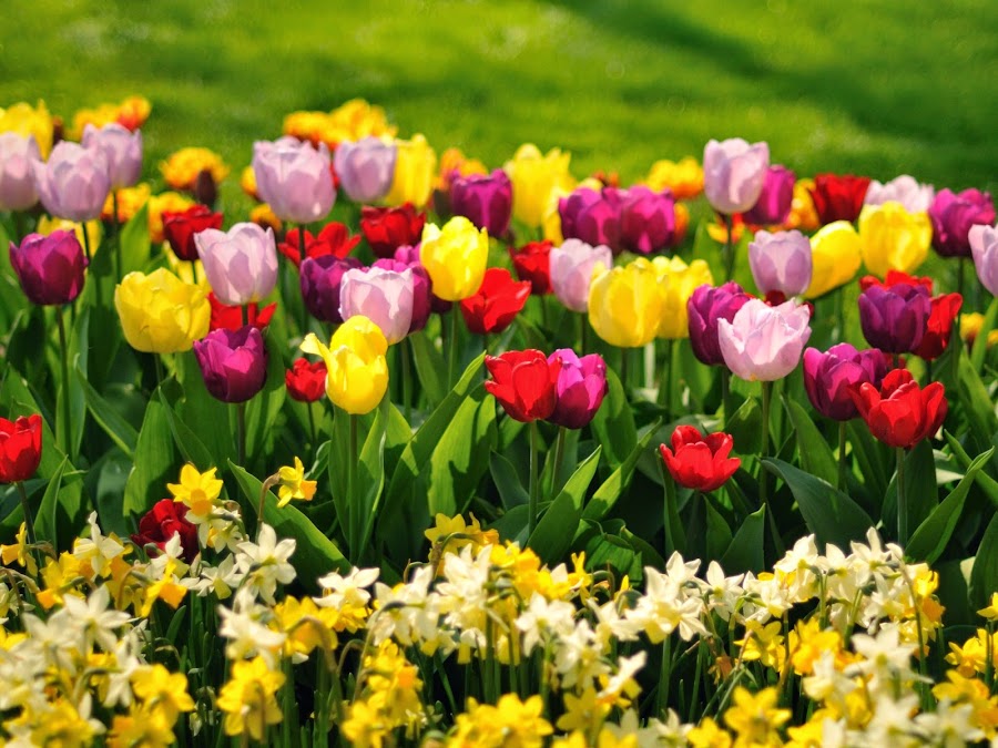 Campos y jardines llenos de Tulipanes de todos los colores, jaspeados, estriados, manchados en distintos tonos; de Narcisos blancos, amarillos y naranjas...