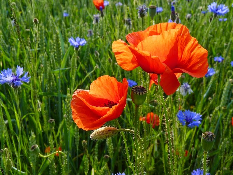 A quien no le apetecería tumbarse un buen rato en un campo lleno de flores, aspirar a pleno pulmón aroma dulzón y agradable que desprende la tierra calentada por el sol, mirar un cielo limpio y de un azul pálido... escuchar los grillos, pegar la oreja a la tierra y sentir sus pulsaciones al dar tanta vida para nosotros, para que lo podamos disfrutar, ver, oler, tocar, acariciar las flores, sentir la aspereza de las briznas de trigo...ver infinidad de diminutos insectos trabajando a destajo.....escuchar zumbidos de abejas comunicando se entre ellas... Ojala todo el mundo pudiera tener la oportunidad de hacer eso alguna vez en su vida ....Que nostálgica me he puesto...Me crié practicamente en una granja... todas las épocas estivales pasaba en la granja de mis Abuelitos.. y allí disfrutaba de lo lindo, del campo, de jardín, de la companía de los animales, de comer al aire libre, de recoger un tomate calentado por el sol y mordisquearlo, de subirnos con mis primos a los árboles frutales y coger manzanas, ciruelas, cerezas de los árboles directamente...por bañarnos en el lago y tener las piernas llenas de rayajos rojos por saltar sobre las balas de heno:)...