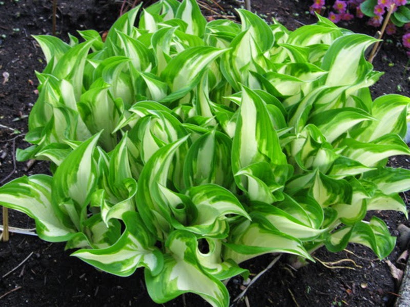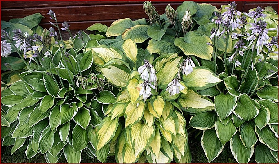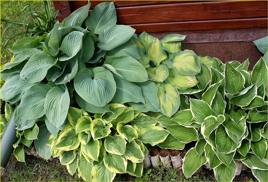 Es una familia muy extensa de variedades, de distintos colores, y para mi de belleza casi perfecta. En la foto de la izquierda tengo una hosta plantada justo debajo de la Hortensia hoja de roble, detrás se ve unas hojas ovaladas de una peonia, y en primer plano un sanísimo y precios arbustíto de ... perejil estan todos en el mismos suelo bastante ácido, y están de mil maravillas