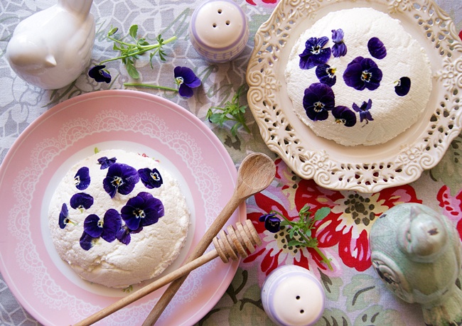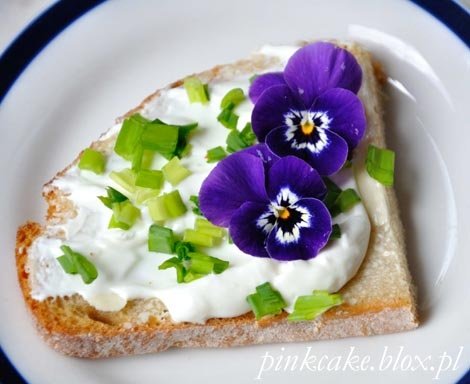 Unos canapés con quesito blanco, cebollino .. y flores de pensamiento morado; que tal para una merienda?