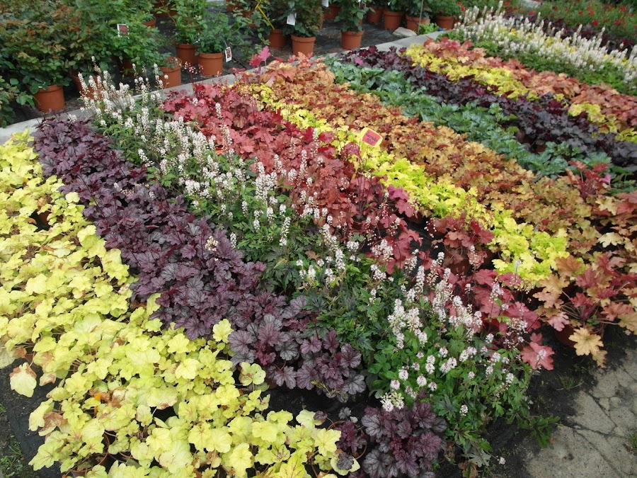 Un centro de jardinería con sus Heucheras expuestas de tal manera;son para aportar ideas!