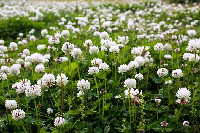 El trébol. Bastante odiado por todo el mundo. Puede que sea una hierba invasora. Puede que no nos guste en el césped, expandiéndose como pólvora por toda la superficie. ¿Qué hacemos? ¿la arrancamos (ya os digo que es prácticamente imposible deshacerse de ella), o dejamos que nos invada el césped? Así tenemos una alfombra verde de hojitas redondeadas y llena de flores exquisitas y de un gran valor nutricional y unas flores cuyo polen se convertirá en una miel de un aroma suave, sabor delicado y curioso, con una pizca de ligera acidez gracias al polen de trébol rojo. Ayuda a un organismo agotado, en nerviosismo y agitación. Nada impide añadir las flores a las ensaladas, portan unas cuantas vitaminas y un sabor sutilmente dulce y crujiente. De enana las comía a puñados, mientras casi todas las niñas nos hacíamos coronitas para el pelo.