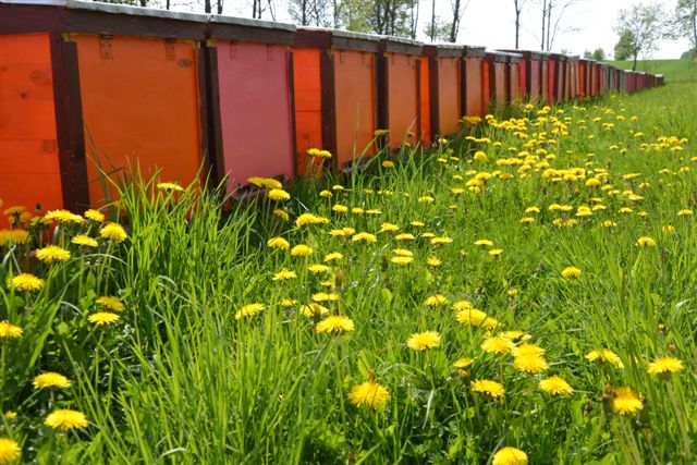 Colmena y flores de Diente de León