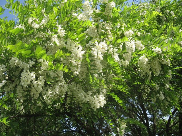 Otro árbol de fragancias embriagadoras es la Robinia. De unos racimos enormes de flores blancas o rosas. Yo el que conozco muy bien es de las flores blancas; es el más común en Polonia. Los racimos de sus flores son dulces a más no poder, por eso no me extraña que suelan estar alrededor siempre revoloteando las abejas para recoger su polen. ¿Y de la miel qué decir? La Robinia es el árbol del cual más miel se llega a producir. Siempre suele haber muy cerca bastantes colmenas; colmadas por cierto de oro líquido en la mejor época.
