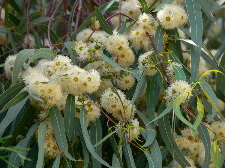 Flores y frutos de eucalipto.