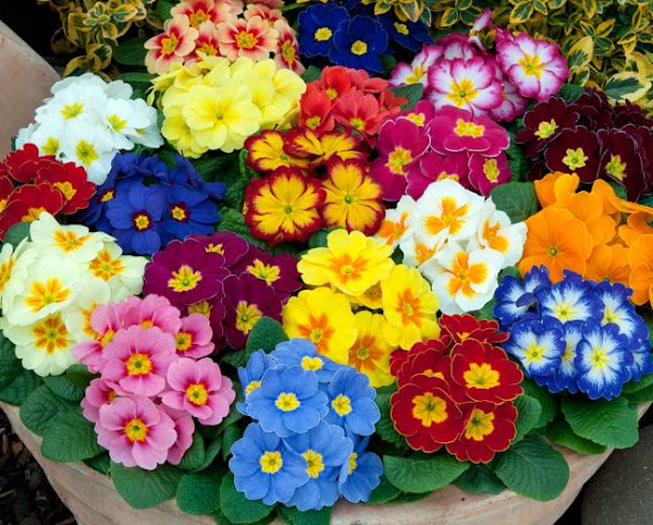 Otra plantita, pequeña, bajita, pero con unos potentes colores y el aroma suavecito y delicado, como el de las fresias...es la Prímula /Primavera.