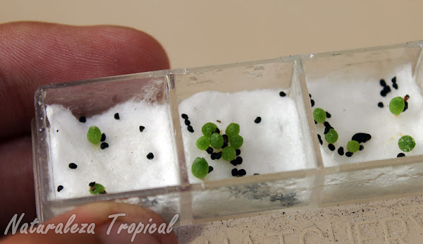 Semillas de Mammillaria prolifera germinadas con algodón