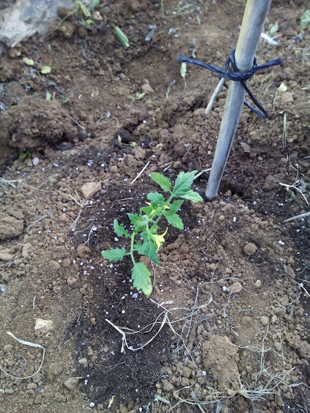 Tomatera cherry plantada en el Huerto con tutor de caña..