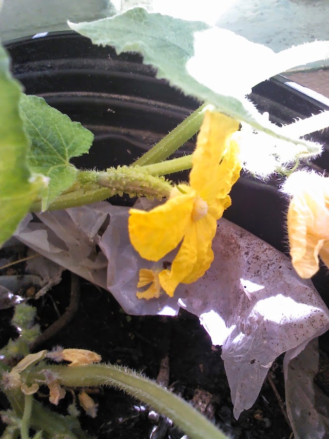 La planta de pepinillos esta empezando con sus flores y cada vez que sale un pepinillo lo polinizo manualmente. Veremos cuantos crecen de la planta. Esto es todo por ahora, hasta la próxima!