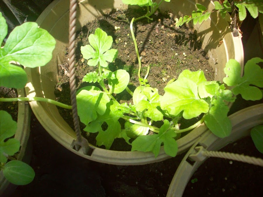 Las plantas de sandia están creciendo aun con la sequía que estamos pasando por donde vivo. El césped esta seco y amarillo.