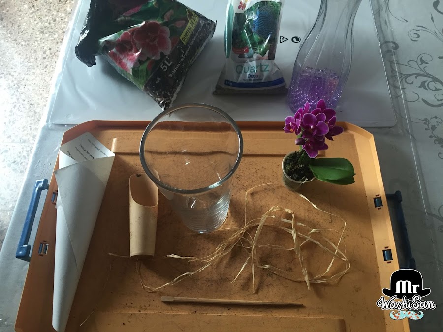Tanto el jarrón como la orquídea han sido compradas en el IKEA.