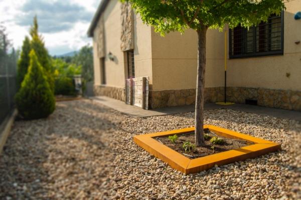 ¿Recuerdas el alcorque que te he enseñado antes? Mira cómo queda hecho en acero corten.