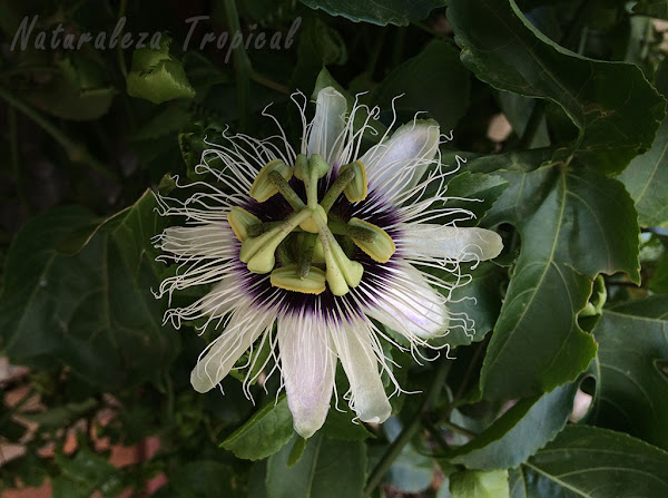 Flor de la Pasionaria (Passiflora edulis), trepadora ideal para jardines pequeños.