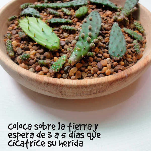 -Luego coloca los cactus en el recipiente (Sin enterrarlo) con tierra o piedras por unos 3 o 5 días. ¡Intenta no saltar este paso! Puesto que la planta necesita cerrar la cicatriz que se generó el desprenderse del cactus madre.