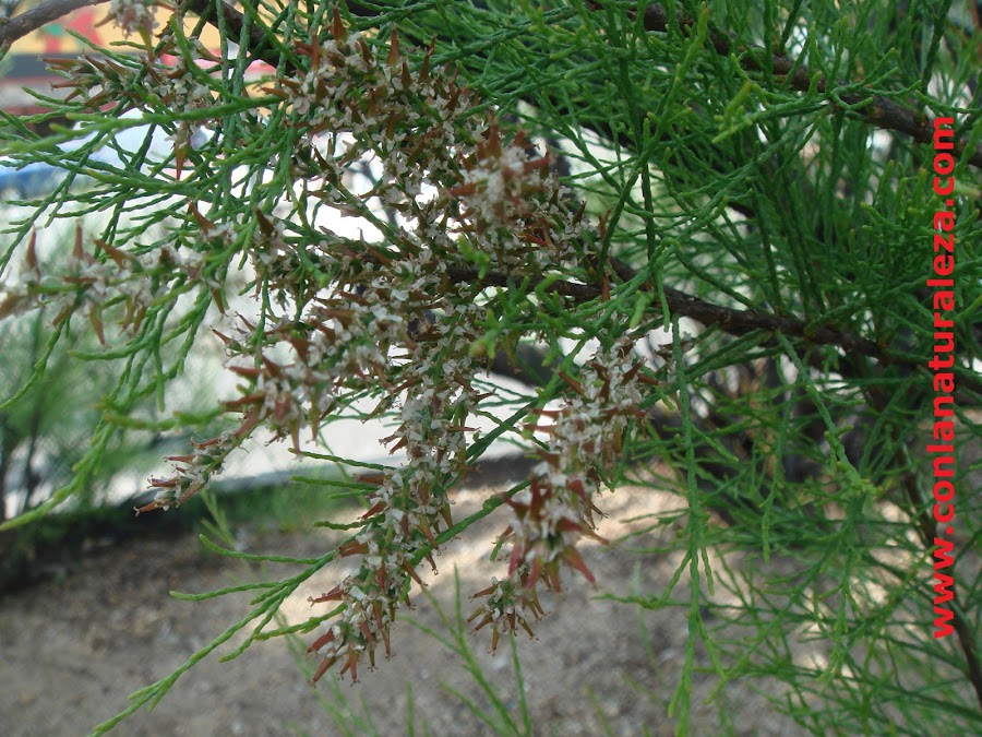 Nombre científico : Tamarix (para determinar la especie hay que esperar a observar el nº de pétalos de las flores , lo mas probable es T. gallica o T. canariensis)