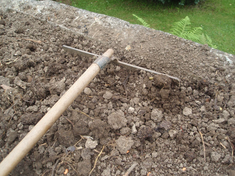 Mullimos el terreno, removiéndolo con una bilda. Mejor unos días antes para que la tierra se airee.