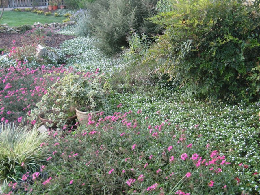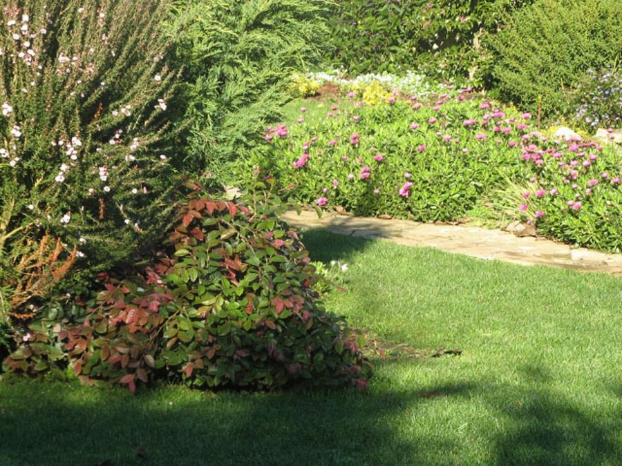 Los arbustos juegan un papel importante en este jardín. Su función es la de mantener el color durante todo el año, por lo que se ha intentado combinar cada especie con gran acierto: "los arbustos fueron seleccionados en función de su época de floración. El abutillón nos garantizaba un invierno lleno de color, junto a las camelias, hebes, leptospermun, ceanotos y la trepadora hardenbergia, nuestra última adquisición".